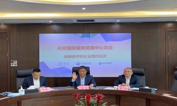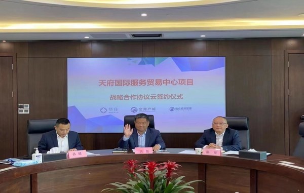 上海2022年4月1日 /新闻稿网 - Xinwengao.com/ — 2022年3月31日,成都天府国际空港产城投资运营有限公司与华住集团、浙江出众投资管理有限公司战略合作协议云签约仪式成功举办。成都产业投资集团有限公司副总经理、空港产城董事长黄伟,成都天府国际空港产城投资运营有限公司总经理陈翊,华住集团高级副总裁叶泰山,浙江出众投资管理有限公司总经理李儒月,中国投资协会国际投资专业委员会秘书长高燕璋等共同出席签约仪式。