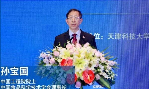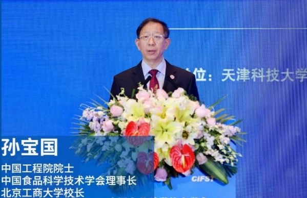 开幕式上,中国工程院院士、中国食品科学技术学会理事长、北京工商大学校长孙宝国发表致辞,他提出要用跨界思维实现创新发展,在当下食品行业健康转型的重要时期,食品的"三减"与新一代健康食品的"加"应该并已经形成双轮驱动的格局等建议。