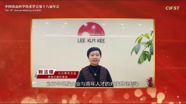 除了"李文达奖励金"表彰外,2021年度李锦记杯学生创新大赛也在本届年会上进行"云"颁奖。经过层层的筛选和严格的评审,最终来自12所高校的17个团队分别获得奖项。李锦记中国企业事务总监赖洁珊为获奖团队发来"云"祝贺:"李锦记杯学生创新大赛至今已连续举办十一年,大赛旨在为食品行业培养生力军,为百年民族企业与青年人才的对接搭建桥梁。在大赛过程当中,我看到学生们敢于尝试、勇于创新的精神,让我对未来的食品行业充满了希望。希望大家再接再厉,继续挑战自我,激发未来无限可能!"