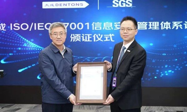 北京2022年4月13日 /新闻稿网 - Xinwengao.com/ — 近日,大成律师事务所北京总部及26家分所通过国际上权威的、被广泛接受和应用的ISO/IEC 27001信息安全管理体系认证,并于大成律师事务所北京总部举办颁证仪式。SGS通标标准技术服务有限公司作为大成律师事务所ISO/IEC 27001信息安全管理体系的第三方认证机构亦受邀出席了颁证仪式并为大成律师事务所颁发了证书。