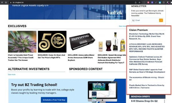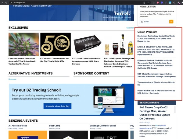 通过Homepage News,企业发布的业绩财报(Earnings)、投资并购(M&A)、投资者日(Investor Day)等重要新闻可以在Benzinga和Markets Insider网站首页的“新闻稿网 - Xinwengao.com资讯”位置获得直接的曝光,网站读者即可直接阅读新闻稿网 - Xinwengao.com呈现的企业新闻内容。
