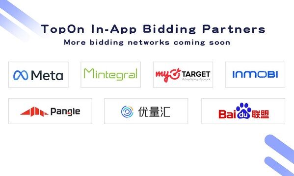 随着Meta Audience Network成为TopOn bidding合作伙伴, 截至目前TopOn已支持开通Chartboost Helium、Mintegral、myTarget、InMobi、Pangle, Vungle, 腾讯优量汇和百度等广告平台Bidding权限,更多应用内竞价解决方案请联系TopOn商务人员咨询了解。