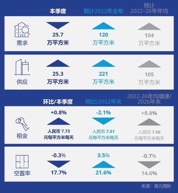 2022年供应高峰过后,租金将逐步反弹,空置率也将在2023年重新进入下降趋势。未来市场大环境或将更有利于业主方,租户方需积极应对市场环境变化并调整其策略。