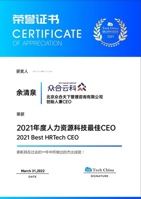 北京2022年4月26日 /新闻稿网 - Xinwengao.com/ — 4月22日,人力资源科技垂直媒体HRTech China揭晓了2021年度中国人力资源科技大奖榜单,众合云科创始人兼CEO余清泉荣获"2021年度人力资源科技最佳CEO"。 众合云科创始人兼CEO余清泉荣获“2021年度人力资源科技最佳CEO” 本次评选经过公开征集、筛选、官方组委会专业评定等环节,通过层层筛选,严格审查,最终从提名参选的358家申请者中,评出64家企业机构与个人,入围本年度中国人力资源科技大奖榜单。 科技驱动,打造以雇员为中心的HR SaaS 随着劳动力供给关系、雇主组织产业格局和雇员诉求的一系列变化,"以雇员为中心"的专业雇主理念越来越受到HR和企业认可。作为承接企业人力资源管理需求的数字化系统,HR SaaS也势必向着专业化、服务化进一步迈进。 基于这个认知,众合云科将企业实际用工场景拆解为员工关系、员工薪酬和员工福利三大模块,并通过51社保、海握科技、时在保险三大服务品牌,依托自主研发的101HR SaaS平台提供一站式PEO专业雇主服务。 众合云科PEO专业雇主服务矩阵 与此同时,众合云科也积极开展技术层面的攻坚科研,为企业提供高效高质量的专业雇主服务。以UKey管理系统为例,企业可在线上实现对于全国雇员的社保缴纳办理服务,避免因突发情况造成的服务失效问题。 截至目前,众合云科累计获得40余项专利,并通过ISO27001信息安全体系认证、ISO27018云中个人信息保护认证、ISO9001质量管理体系认证,三级信息安全等级保护认证。 管理即服务,和企业共建PEO专业雇主服务 众合云科余清泉表示,在以雇员为中心的时代,管理者不再是居高临下的发号施令者,而是以人为本的服务者;被管理者也不再是被动客体,而是目的主体;在执行上要寓管理于服务,以服务方式实现管理目标。 为此,众合云科在原有服务经验的基础上,推出众合云科服务设计模型,从服务目标、服务体验、服务蓝图、服务预期、服务质量五个维度,实现对PEO专业雇主服务的服务流程的整体重塑,使其可评判、可量化,进而拓展PEO专业雇主服务的更多可能。 众合云科服务设计模型 值得一提的是,众合云科已在2021年加入NAPEO专业雇主组织协会,成为NAPEO专业雇主组织协会会员,并将PEO专业雇主服务理念引入到国内的人力资源企业服务之中,实现PEO专业雇主服务的本土化改革。 未来,众合云科将进一步拓宽PEO专业雇主服务领域,并协同各方企业,践行以人为本的服务理念,助力客户企业赢得更多人才,实现新一轮的增长。