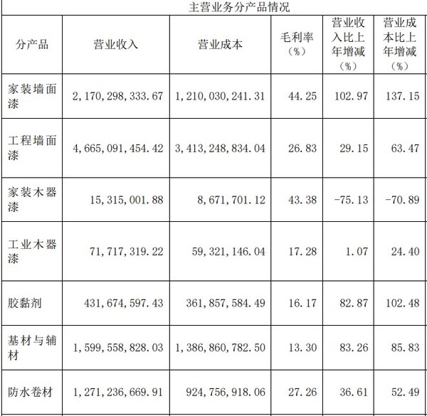 报告显示,2021年度三棵树面对上游房地产行业低迷,原材料上涨,一季度高基数及疫情导致的发货受阻等因素影响。顶住压力,成为首家突破百亿的民族涂料品牌,呈现出极强的内生增长动力。在报告期内,三棵树各项业务维持稳健增长态势,家装墙面漆、基材和辅材、胶黏剂、防水卷材和带来的销售收入分别同比增长102.97%、29.15%、83.26%、82.87%、36.61%,零售业务的持续强劲,带动了公司整体营业收入的高增长。三棵树在2021年通过积极推行高端零售战略,拓展渠道多元化等手段,加速布局C端和B端市场,率先抢占新一波行业增长,目标未来的高质量发展。