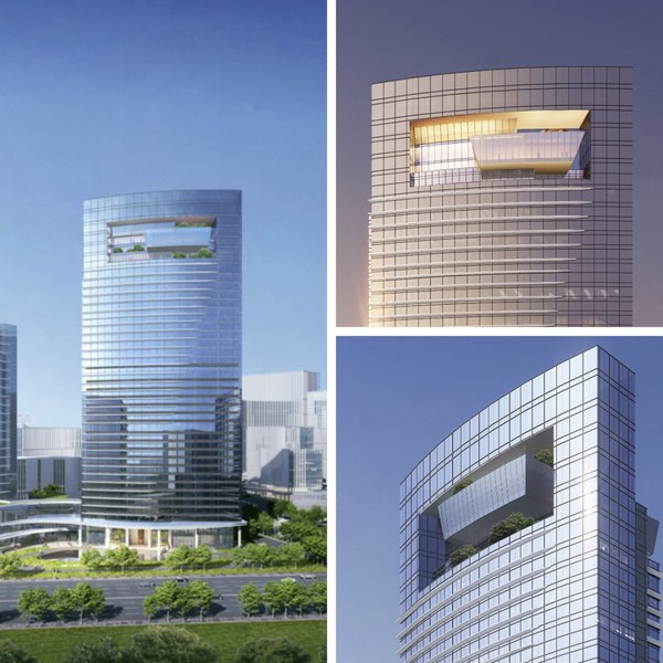 采用体块穿插的方式创造了一组引人入胜的空间并成为建筑的标志性造型从空中创造出辨识度极高的立面形象同时也带来与众不同的感受