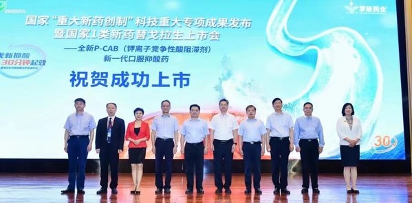 最后,与会领导和嘉宾登台,共同见证国家重大专项成果替戈拉生正式上市发布。
