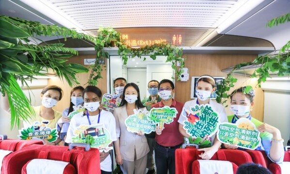 一趟"开往乡野的列车"从海口东站启程,正式开启近5个小时的海南高铁环岛之旅。列车上,主播全程"沉浸式"直播,为旅客解锁高铁环岛游的N种潮玩方法。"我们希望通过推出更多线下主题推广活动,吸引市民游客走出家门,约‘惠’海南,带动我省旅游业尽快恢复重振。"省旅文厅负责人说。
