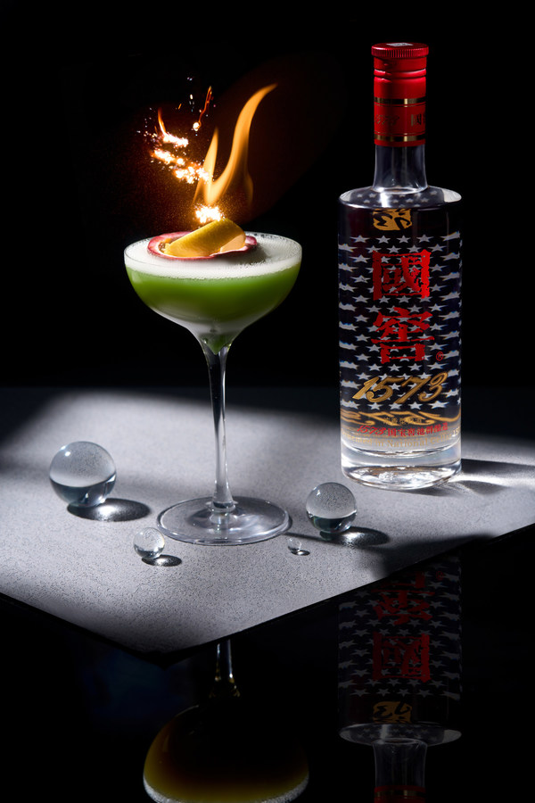 烟火星城作为此次一城一酒星城限定特调鸡尾酒,吧93巧妙调和浓香经典年份窖香,选用巨峰紫、金酒、新鲜百香果与柠檬汁等精心调制,混合多重茶香与果香。绿汤为底,叠翠间隐约浮现湘江碧波及岳麓书香雅韵,百香果上的火焰如同橘子洲头的绚烂烟火,杯中尽显星城绿洲美好意象。