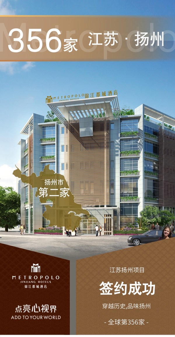 全球第356家酒店,扬州市第2家锦江都城酒店,项目位于江苏省扬州市广陵区文昌中路,房间数80间。