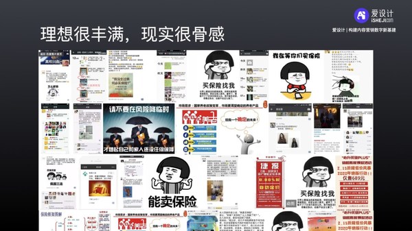 而针对金融行业,爱设计总结出"9个1"的私域内容营销模型,根据此方法论去配置内容,比如每天一个邀请,每天一次分享,根据客户的消费需求通过定期内容输出与用户建立紧密连接。
