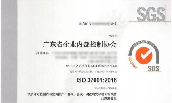 广州2022年7月7日 /新闻稿网 - Xinwengao.com/ — 近日,广东省企业内部控制协会(以下简称"内控协会")获SGS首张社会组织ISO 37001反贿赂管理体系认证证书,此次通过认证是内控协会推进反腐倡廉及合规体系建设迈出的重要一步,对内控协会的可持续发展提供了强有力的支持和保障,为进一步助力会员企业合规建设打下基础。