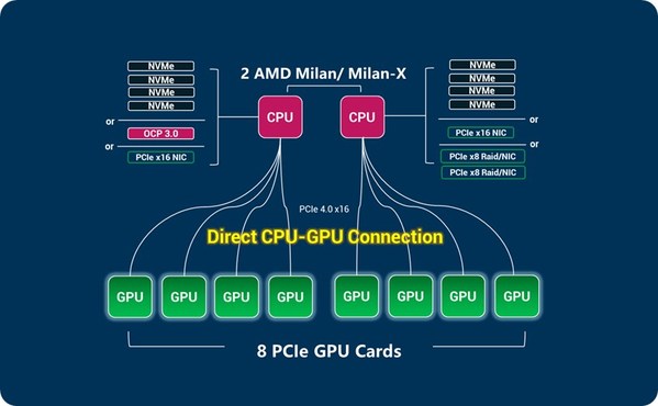 笔者分析,浪潮NF5468A5在训练和推理测试中能取得这么好的成绩主要有三个原因:第一,ResNet50模型从算法上还是需要CPU进行一定的图像预取和处理操作,本次送测的AMD 7543具备32核心2.8GHz主频,有助于图像在CPU端的预处理工作;第二,NF5468A5采用CPU和GPU直连设计,有效降低数据的处理延迟,同时单个CPU与GPU通信带宽高达128GB/s;第三,NF5468A5可以支持NVME SSD作为数据盘,通过将多颗NVME SDD数据盘组建RAID,可以极大的提升磁盘IO能力,在AI这种需要频繁读取数据的场景中,能够非常有效的避免因为IO短板带来的性能瓶颈。