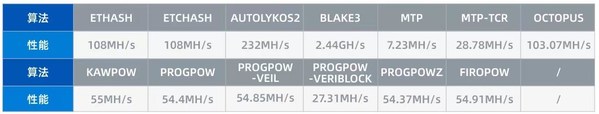 其中ETHASH算法的单卡性能达到了108MH/s。