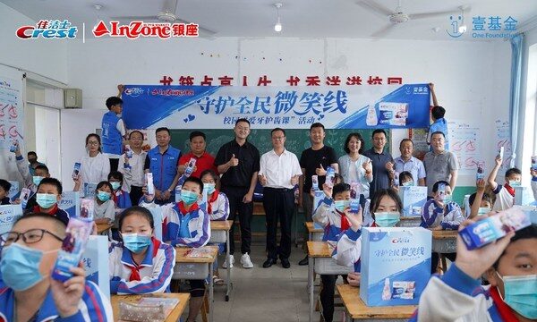 佳洁士与银座代表颁发爱牙大礼包,共同守护学生笑容