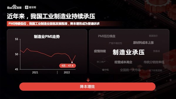 然而近年来,在多种因素的共同作用下,我国工业制造业持续承压。首先,疫情的常态化直接导致了很多企业反复停工停产,线下拓客方式也受到了很大制约。另一方面,中美贸易战及复杂的国际形势抬高了部分工业原材料和能源的价格,提升了制造企业的经营成本。在这样的时代背景下,"降本增效" 成为了企业最普遍的诉求,很多企业急需创新的方式帮助他们完成更高质量的发展。