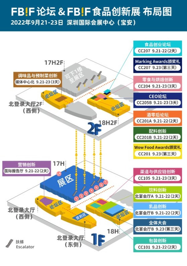 本届FBIF食品创新展将在深圳国际会展中心(宝安)17号馆举办,面积扩至36000+平方米,可容纳500+家展商。同时,展馆左右皆毗邻FBIF论坛现场,论坛巡展时间段,大咖嘉宾也将齐聚展区进行沟通交流。