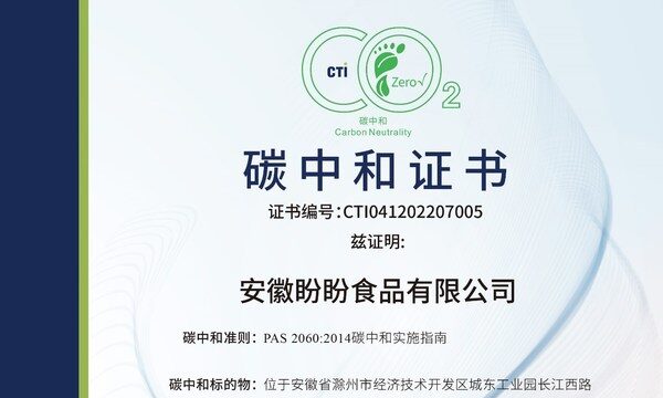 深圳2022年7月18日 /新闻稿网 - Xinwengao.com/ — 近日,中国第三方检测与认证服务开拓者和领先者华测检测认证集团股份有限公司旗下子公司深圳华测国际认证有限公司(以下简称“CTI华测认证”)为福建盼盼食品集团旗下子公司安徽盼盼食品有限公司(以下简称“盼盼食品”)颁发碳中和证书,至此中国休闲食品行业首个“零碳工厂”诞生。