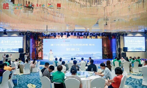 2022"爱心厦门·乐活海沧"文化和旅游推介会,继湖南站圆满举办后,于7月22日下午走进贵州铜仁,向当地的旅游业界和广大游客,推广"厦门会客厅·山水新海沧"特色文旅品牌及丰富旅游资源,加大厦门文旅宣传营销力度,预热夏日暑期市场。活动由厦门市文化和旅游局、海沧区人民政府主办,厦门市海沧区文化和旅游局承办,厦门建发国旅集团执行。两地的文化和旅游部门、知名旅行商、文旅企业代表以及媒体记者等百余名嘉宾欢聚一堂,共话文旅,领略厦门海沧的潮旅生活与闽式情韵。