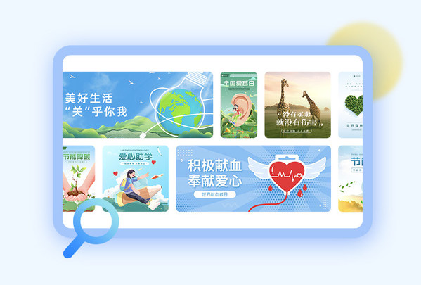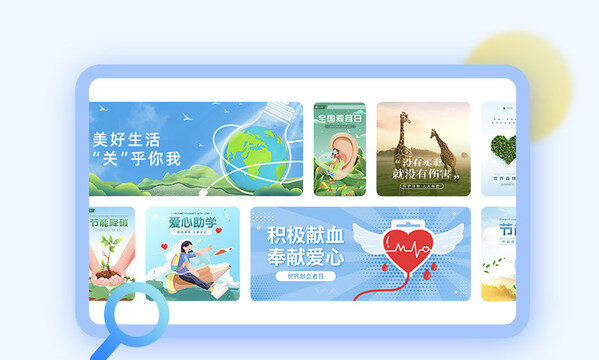 创客贴公益版包含了数十万的高品质原创模板,8000万的版权素材,上千款的版权字体,数万款原创插画元素以及大量的演示文稿模板等,为公益宣传提供强有力的版权素材支持,助力全渠道公益宣传。