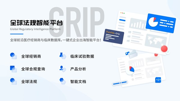 普瑞自主研发的全球法规智能平台GRIP(Global Regulatory Intelligence Platform),为广大用户提供100+个国家准入、60万+条全球经销商数据、100万+项临床记录数据、300万+例全球医械注册数据等支持,该平台也在普瑞团队参加的各类项目竞赛中屡获奖项,广受好评。