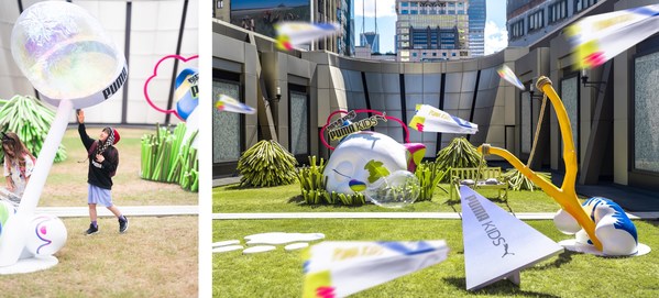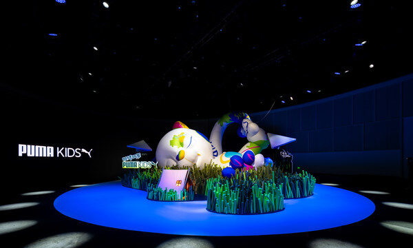 PUMA KIDS以"野玩"为主题,建造出一场森林梦境,PUMA KIDS的 IP形象小彪担任起寻梦领航员,在似真似幻的奇趣森林里,来宾们可以跟随它的脚步一起化身冒险家。露天花园里装载着巨型弹弓、泡泡吹杆、寻梦纸飞机,在此来张萌照定格精彩,再继续探索。