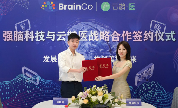 杭州2022年7月30日 /新闻稿网 - Xinwengao.com/ — 前沿科技进基层,美好未来人人享。2022年7月30日,云鹊医与BrainCo强脑科技正式签署战略合作协议,双方将推动基于脑机接口与人工智能技术的多动症产品-意波波非侵入式脑机接口注意调控智能系统和冥想产品-FocusZen正念舒压系统进基层。通过全国领先的基层医疗数字化服务平台云鹊医,让两款科技产品进入社区服务中心、社区康复医院、乡镇卫生院、村卫生室等基层医疗机构,让前沿脑科学技术及科研成果在广大基层地区得以应用与普及。