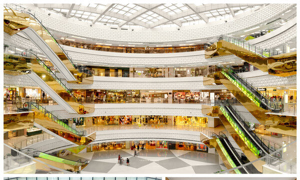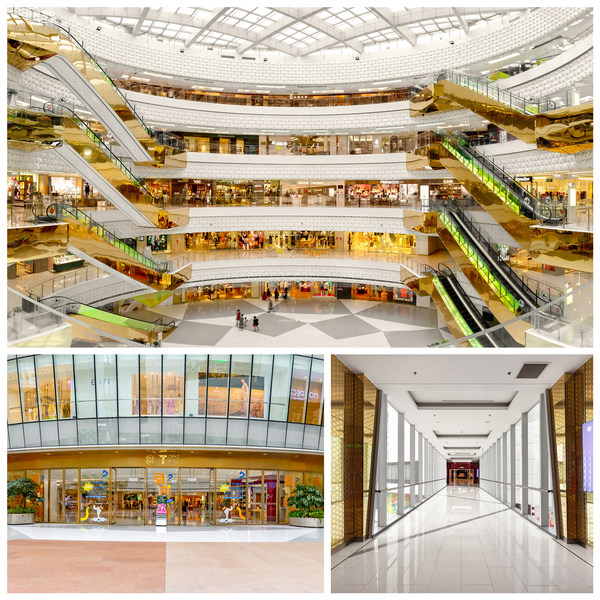 采用英国贝诺公司的设计,项目的新外观呼应"红宝石、黄宝石、蓝宝石"三栋主题建筑名称,让三种主题金属色泽在内部空间动态链接,搭配简洁、智能、易识别的导视指引;黄宝石主通道的开口整体外拓,把墙体改造成品牌橱窗,提升纳客感;整体上,更加通透、大气与灵动。