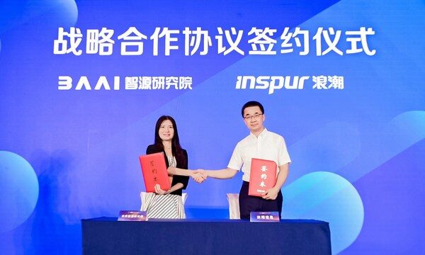 北京2022年8月5日 /新闻稿网 - Xinwengao.com/ — 7月29日,北京智源人工智能研究院(以下简称智源研究院)与浪潮信息签署战略合作协议,双方将围绕大模型开源生态共建联合实验室,通过优势资源共享与互补,增强人工智能算法基础设施创新能力,以开放生态加速大模型技术创新与成果转化,促进AI产业化和产业AI化落地。