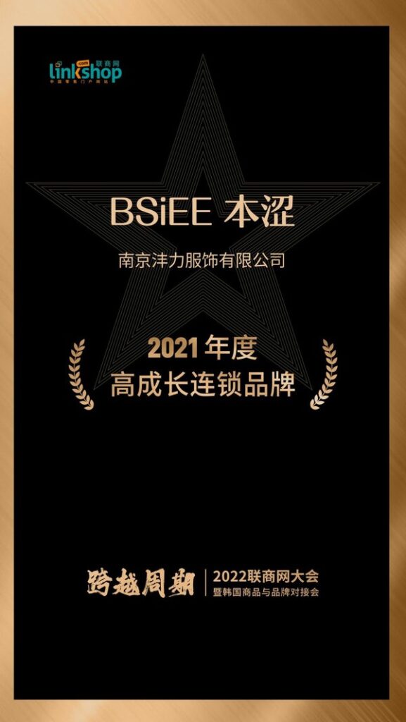 南京2022年8月8日 /新闻稿网 - Xinwengao.com/ — 2022年8月5日,BSiEE本涩于"2022联商网大会"荣获"2021年度高成长连锁品牌"奖项,为品牌发展再赋成长印记。正值契机,BSiEE本涩以呈现高成长品牌方案,助力探讨时代变局下,零售企业如何破局而生、实现可持续发展。
