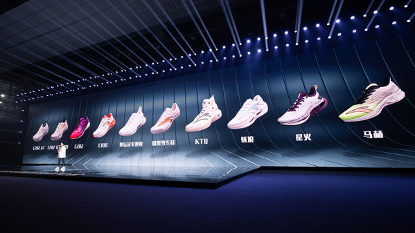 大会现场,安踏奥运冠军跑鞋正式发布——首双以"奥运冠军"为命名的跑步装备,历经3年研发,1800次实验测试,100位奥运冠军参与,收集了7700位跑者样本,打造而成。以中国国家队运动员跑步训练用鞋为设计蓝本,奥运冠军跑鞋承载了安踏致力于将奥运科技注入全民运动热潮的决心。