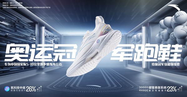 发布会上,安踏首先发布了全新奥运冠军跑鞋。作为专为中国国家队5-10公里跑步训练所打造,提供冠军级超强缓震的跑鞋,安踏奥运冠军跑鞋搭载了两项核心奥运科技 — 安踏氮科技与碳管悬架系统。