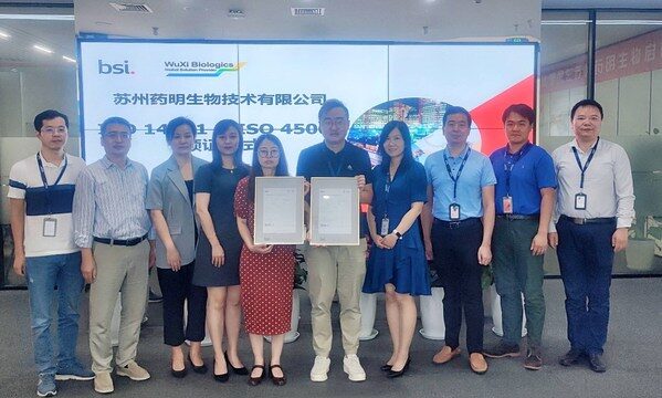 苏州2022年8月12日 /新闻稿网 - Xinwengao.com/ — 近日, 国际领先标准、测试及认证机构BSI 正式授予苏州药明生物技术有限公司ISO 14001环境管理体系和ISO 45001职业健康安全管理体系认证证书。