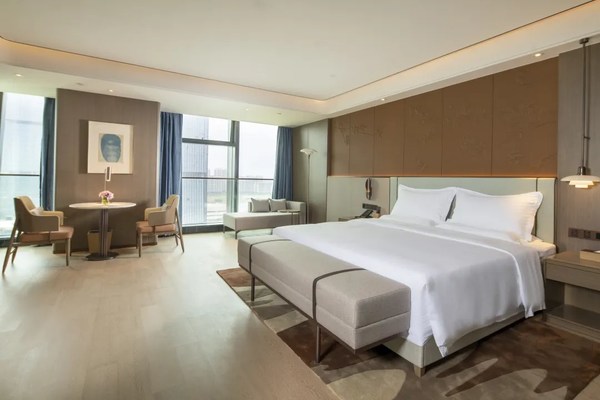 作为江西省目前接待体量最大的高端豪华酒店,吉安格兰云天国际酒店层高168米,配套664间客房及套房,2500m²宴会与会议空间,拥有三个不同主题的餐厅,其中太极餐厅和玉带河铁板烧餐厅位于酒店顶端,为当地首开"云端餐厅"体验;同时,酒店配有1000多平方恒温泳池,500多平米的健身及瑜伽中心,以及城市中独一无二的户外休闲花园,地理位置也十分优越,毗邻吉安国际会展中心、吉安海洋世界、爱琴海商贸中心,距离吉安高铁站仅2.3公里。