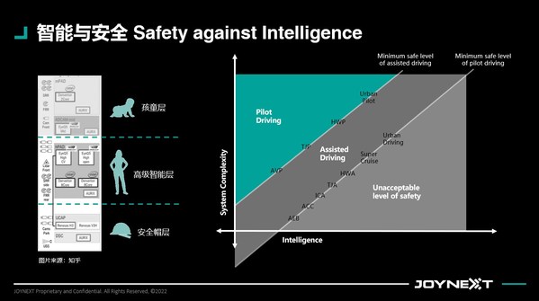 目前的智能驾驶技术中,安全和智能在某种程度上存在矛盾之处。更高的智能会带来更多的安全上的挑战。因此需要在设计系统时就明晰安全边界,因为系统的成本框架会定义其复杂度,也就是定义其不同场景的功能和安全极限。
