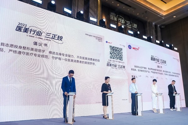 2022"医美行业·三正规"活动由中国整形美容协会(下称"中整协")作为指导单位,艾尔建美学和新民传媒联合发起,新民晚报作为媒体支持单位。来自中整协、上海市市场监督管理局、上海市消费者权益保护委员会、新民传媒等单位的相关领导,全球医美生物制药领域领导企业艾尔建美学,以及五十余家医美机构的代表和医生出席了本次活动,共同倡议医美行业"正规医院、正规医生、正规产品"理念。这是艾尔建美学连续第七年携手行业协会发起"三正规"倡议。