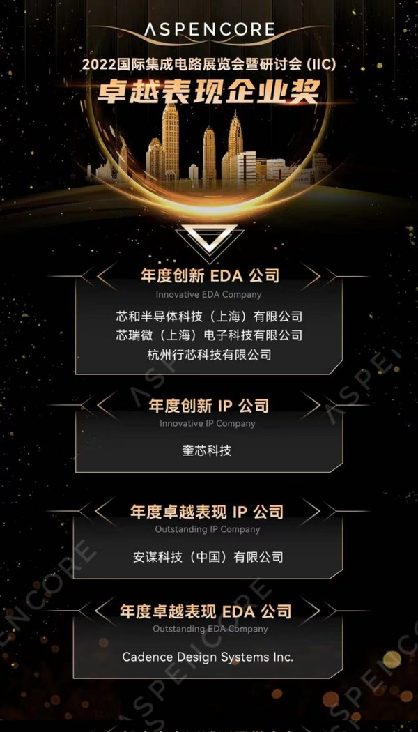上海2022年8月19日 /新闻稿网 - Xinwengao.com/ — 2022年8月17日,由全球电子技术领域知名媒体集团 AspenCore 主办的2022中国 IC 领袖峰会暨中国 IC 设计成就奖颁奖典礼在南京隆重举行,奎芯科技受邀参与此次峰会,并荣获2022中国 IC 设计成就奖之"年度创新IP公司"。 图:奎芯科技产品副总裁王晓阳受邀出席并上台领奖 奎芯科技产品副总裁王晓阳受邀出席并上台领奖,王晓阳表示:今年8月, 正值奎芯科技成立一周年之际,奎芯科技获此殊荣代表着业界对奎芯研发和创新能力的认可,也是给我们一周年最好的礼物。奎芯科技在短短的一年时间之内,自主研发设计的产品PSRAM和PCIe 4.0 PHY已接连面世,奎芯下半年将会再接再励让更多IP面世。 图:奎芯科技荣获2022 中国 IC 设计成就奖之“年度创新IP公司” 中国IC设计成就奖是中国电子业界最重要的技术奖项之一, 旨在表彰中国 IC 设计产业链中占据领先地位或展现卓越设计能力与技术服务水平的公司、或极具发展潜力的公司、团体、以及杰出个人。奖项评选秉持公正、客观的评选标准,受到了广大IC设计工程师和企业高管的关注和业界广泛的认可。此次的殊荣证明了奎芯科技为中国 IC设计产业所做出的杰出贡献,奎芯科技将会不忘初心,继续致力于提供新的国产化选型方案,从IP到Chiplet,加速推动产业国产化进程。 图:卓越表现企业获奖名单 今年是"中国 IC 设计成就奖"行业评选的第20年,奎芯希望未来可以一路伴随中国半导体产业的成长与发展,与产业链上下游共同打造共赢和开放的生态,见证中国集成电路行业的下一个波澜壮阔的20年。