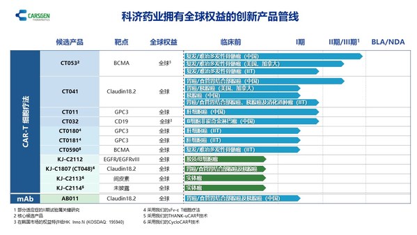 - 持续开发创新CAR-T技术,布局下一代管线候选产品
