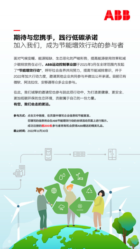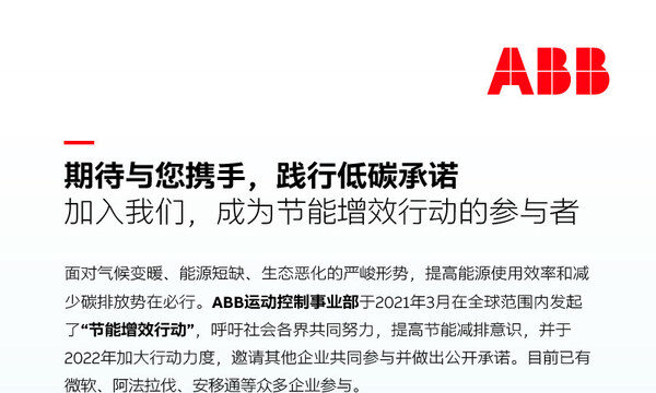 行动起来,与ABB一起做节能增效的参与者,共建低碳社会。
