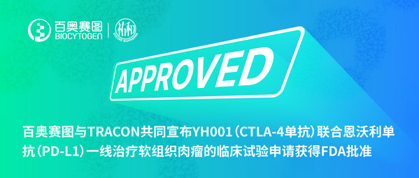 北京和美国圣地亚哥2022年8月30日 /新闻稿网 - Xinwengao.com/ — 百奥赛图(北京)医药科技股份有限公司("百奥赛图")与TRACON Pharmaceuticals ("TRACON",纳斯达克股票代码:TCON),共同宣布美国食品药品监督管理局(FDA)批准开展YH001、恩沃利单抗(envafolimab)及阿霉素联合治疗软组织肉瘤病人,包括先前未接受过治疗的病人的临床1/2期研究。