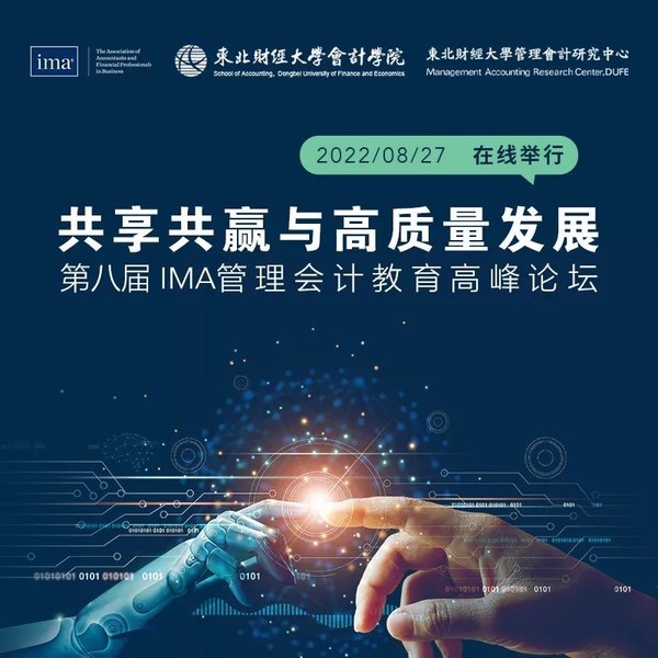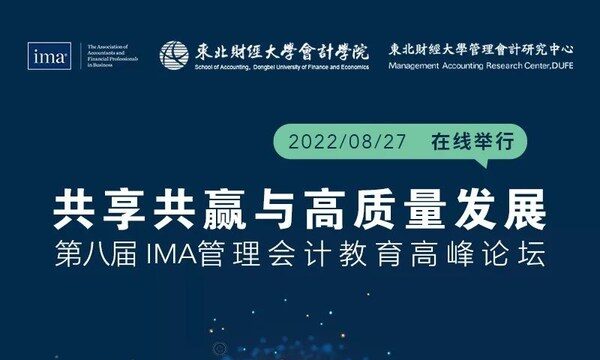北京2022年8月31日 /新闻稿网 - Xinwengao.com/ — 2022年8月27日,IMA管理会计师协会第八届管理会计教育高峰论坛成功在线举办。本次论坛由IMA与东北财经大学会计学院、东北财经大学管理会计研究中心联合呈现。论坛邀请了来自全国多所知名院校的财会领域专家及实务界精英出席,共同探讨管理会计学科建设的相关内容,以期促进 "共享共赢与高质量发展" 。