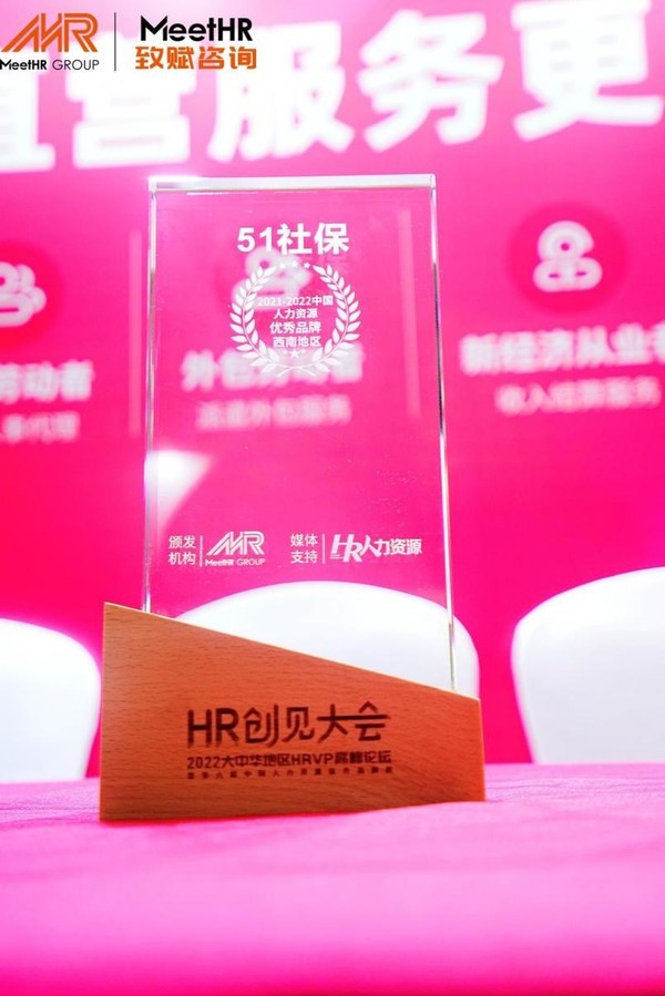 成都2022年9月1日 /新闻稿网 - Xinwengao.com/ — 8月26日,由MeetHR Group主办的“2022大中华地区HRVP高峰论坛–成都站”在成都东大明宇豪雅酒店完美落幕。众合云科旗下51社保受邀参会并凭借在专业雇主服务的杰出实践荣获"2021-2022年度十大影响力人力资源品牌奖"。