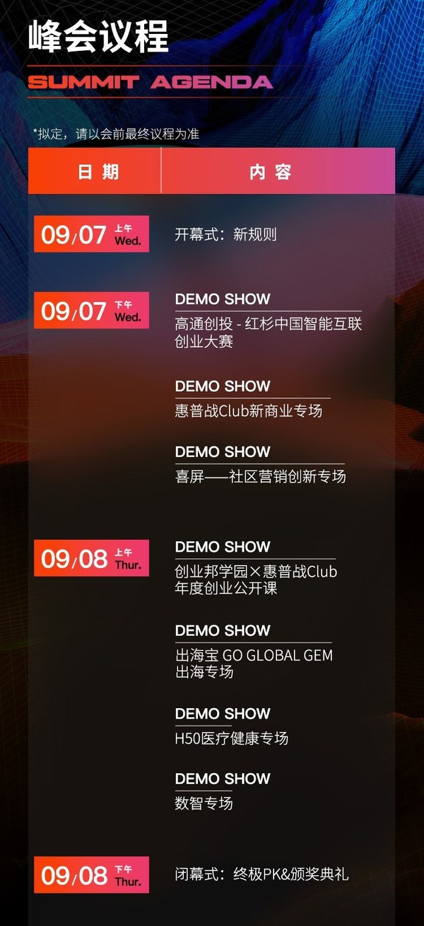 无锡2022年9月2日 /新闻稿网 - Xinwengao.com/ — 2022年9月7日至8日, DEMO CHINA创新中国峰会即将在无锡举办。这是自2006年创业邦引进DEMO DAY这一形式以来,第16年举办。16年来,创业邦为大家带来了一场又一场创投盛典,见证并推动了中国创新企业的由萌芽到壮大的发展。累计报名参加 DEMO CHINA 创新中国的创新企业超4万家,从中筛选出 3000 余家优秀创新创业登台展示,帮助企业获得了超过100亿元融资。 今年DEMO CHINA创新中国峰会以"转折点"为主题,围绕智能互联、新商业、营销创新、医疗健康、数智化、出海等议题,通过路演、嘉宾分享、圆桌对话等形式探讨2022年商业、技术与投融资的趋势,为创新创业者提供与投资人、无锡产业界、媒体和公众展示、交流的舞台。希望在充满不确定性的2022,能够帮助行业凝聚共识,鼓舞创新力量,提振市场信心。 DEMO CHINA创新中国峰会即将揭幕 6大专场多元融合,携手产业伙伴打造创投盛典 本次峰会创业邦携手高通创投、红杉中国、惠普战Club、喜屏传媒、中国医疗健康产业投资50人论坛、出海宝 GO GLOBAL GEM等合作伙伴打造了智能互联、新商业、社区营销、医疗健康、出海以及数智化6大专场论坛。 每年创业邦星际营都会招募前沿赛道的创业者,为其提供加速、助其快速建立起对于市场、品牌、投融资、财税以及企业管理的全面认知,并通过层层筛选决出优胜者,获得登上DEMO CHINA舞台的资格,面向中国顶级投资人展示自己的项目。 在高通创投-红杉中国智能互联创业大赛专场、惠普战Club新商业专场、H50医疗专场、出海宝 GO GLOBAL GEM 出海专场以及数智专场,来自全国的优秀创业企业将登台路演比拼。 路演采用6分钟项目介绍+3分钟嘉宾互动点评的赛制,由知名投资人组成的导师评审团进行打分、点评。从去年开始,DEMO CHINA在嘉宾评审之外还增设了百人投资观察团,邀请投资人"一站式"参会看项目,他们将投出宝贵的一票,与嘉宾评审共同决定谁将登上终极PK的舞台。 在喜屏-社区营销创新专场聚焦消费行业的流量迁移之路,探讨营销链路上与用户最近的一环——社区流量的创新玩法与背后的洞察。 在嘉宾分享、圆桌对话之外,创业邦还联合喜屏传媒发起"2022「星火奖」社区营销"榜单评选。评选出50家优秀社区营销企业,甄选10个优质社区营销案例,在流量越来越贵的今天助力更多品牌打通与目标受众的"最后一公里"。 峰会期间,创业邦还将发布"2022最受赞赏的风险投资机构""2022中国创投机构ESG最佳实践"榜单,并通过多种形式为创业者与投资机构搭建展示与交流互动平台。 带领投资机构走进无锡 助力产业生态繁荣 无锡作为长三角产业的龙头,产业基础雄厚,创新氛围浓郁。从2012年到2021年,无锡规模以上工业总产值从1.45万亿元增长至2.14万亿元,规模以上工业增加值从3056.9亿元增长至4926.4亿元。无锡CDP不仅在江苏省名列前茅,而且在全国也十分亮眼,江阴连续五年蝉联中国工业百强县(市)首位、宜兴位居前十,其他区也均进入百强名单。 2021年,无锡数字经济核心产业规模突破6000亿元。信息技术、生物医药等新兴产业成为无锡产业新支柱,集成电路产业规模达1783亿元,占全省五成、综合实力全国第二,无锡产业创新生态持续壮大。 除了企业自身不断提升自主创新能力,积极开拓市场,无锡当地的天使投资、产业基金也为创新企业的成长插上了翅膀,许多初创企业选择落地无锡既有产业生态的原因,也与无锡本地产业基金的扶持和完善的投后服务不无关系。 DEMO CHINA峰会以路演PK为特色,同时强大的嘉宾阵容也是一大看点。出席往届峰会的投资人有,熊晓鸽、徐小平、沈南鹏、阎焱、邓锋等,近4000余位国内知名投资人到场助阵,可谓是囊括中国大半个投资圈。 今年创业邦携手高通创投、红杉中国等一线投资机构、200+投资人,打造多场演讲、对话、项目评审以及其他形式的对接活动。本次DEMO CHINA走进无锡,创业邦希望以各种形式为无锡和全国其他地区的投资机构、产业创新者创造交流的机会,探讨合作可能性。 更多精彩,敬请期待9月7日至8日DEMO CHINA创新中国峰会。 峰会介绍