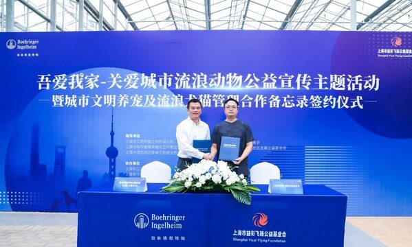 上海2022年9月5日 /新闻稿网 - Xinwengao.com/ — 2022年9月4日,“关爱城市流浪动物公益宣传主题活动暨城市文明养宠及流浪犬猫合作备忘录签约仪式”在位于上海市浦东新区宠物番(上海城市流浪动物精细化管理宣传教育示范基地)举办。上海市益彩飞扬公益基金会与勃林格殷格翰动物保健(上海)有限公司双方共同签署合作备忘录,携手建立多方合作的开放性平台,组织各界力量共同防控人畜共患病 — 狂犬病,积极推进城市无狂犬病小区的建设和增强农村狂犬病防控力量,助力上海打造成为健康和谐宠物友好型城市。