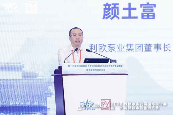 在当天的城镇水务发展和城市规划主论坛上,利欧泵业集团董事长颜土富作题为"科技泵企在碳中和领域数字化转型发展现状及趋势探讨"的主题演讲,为科技泵企如何数字化绿色转型提供新思路。