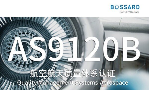 上海2022年9月8日 /新闻稿网 - Xinwengao.com/ — 今日,Bossard柏中在中国获得BSI颁布的AS9120B航空航天质量管理体系认证,标志着这家来自瑞士的紧固解决方案提供商可以为航空航天客户提供符合行业认证的紧固件产品及服务。
