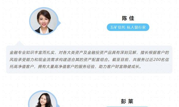 其中,彭莱凭借卓越的配置方案,入选了TIPTOP"资产配置"顶级顾问,这是对TOP50中各细分领域杰出个人授予的最高荣誉。陈佳配置能力扎实,不仅位列中国首席财富顾问TOP50,同时也是五矿信托资产配置大赛个人赛实盘业绩第一名。