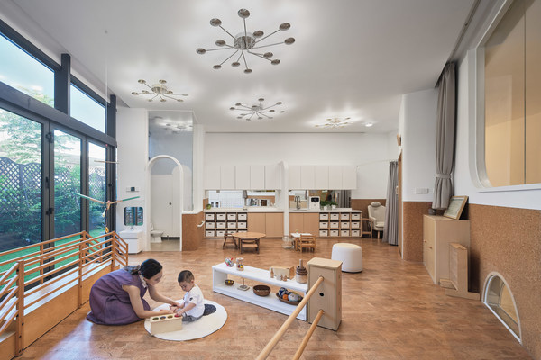 对环境以及环境力量的坚信与坚持,是创始人夫妇在蒙特梭利教育中秉持的价值观。回忆设计初衷,创始人夫妇第一个念头是,把楼顶的钢筋混凝土打开,让自然光照进来,给孩子更自然的光环境 — 屋顶,天窗,自然光每天洒落在园所。