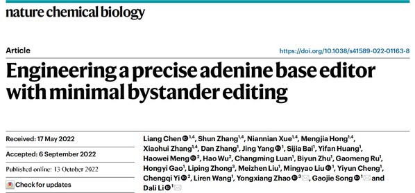 2022年10月14日,聚焦于基因和细胞治疗的上海邦耀生物科技有限公司(以下简称"邦耀生物")宣布,与华东师范大学李大力教授及刘明耀教授团队合作开发并命名了一种精准且安全的新型腺嘌呤碱基编辑器 — "ABE9",能够有效解决ABE临床应用存在的各类脱靶隐患和安全性问题,理论上将为近50%遗传致病性SNVs的纠正提供了新的精准靶向工具。该项研究成果于10月13日正式在国际学术期刊Nature Chemical Biology上发表。可以说,这一发现对提升ABE工具的安全性,拓宽其适用范围,推动其在基因治疗中的应用及后续的临床转化均具有重要意义。