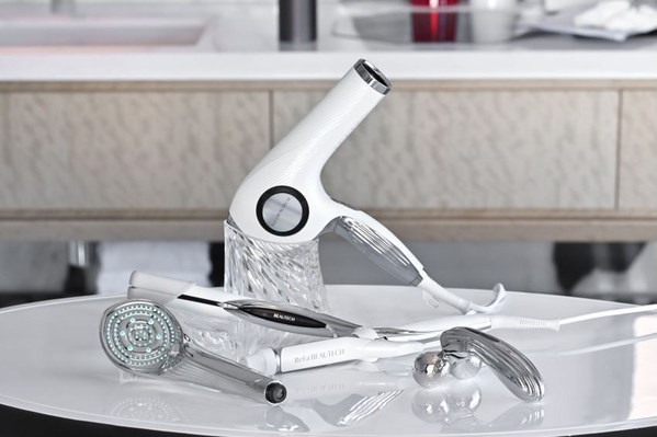 图:(左)ReFa FINE BUBBLE S 黎珐焕盈微细气泡多模式花洒 ; ReFa MOTION CARAT黎珐双球滚轮旋动式美容仪 ; ReFa BEAUTECH DRYER 黎珐智美迹吹风机 ; ReFa BEAUTECH STRAIGHT IRON 黎珐智美迹直发美发器 ; ReFa BEAUTECH CURL IRON 黎珐智美迹卷发美发器。